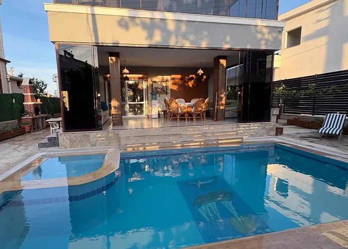 Oferind o terasă cu vedere spre piscină, Villa Didim cu 3 dormitoare este situat la 6 minute de mers pe jos de Altinkum. Dacă se cazează la această vilă cu 3 băi, situată la 2.2 km de I Love Didim, oaspeții pot beneficia de o un jacuzzi și o cadă cu hidromasaj, precum și de o piscină privată.